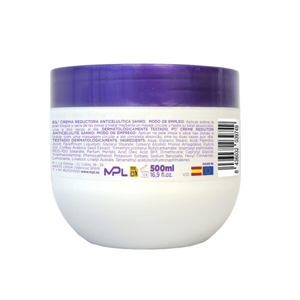 Crema Reductora anticelulítica gracias a su contenido de Cafeína aumenta y quema de grasa y frena su aparición. Efecto adelgazante.